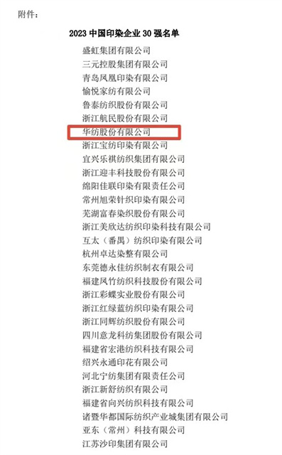 喜報!公司蟬聯(lián)2023年中國印染企業(yè)30強(qiáng)